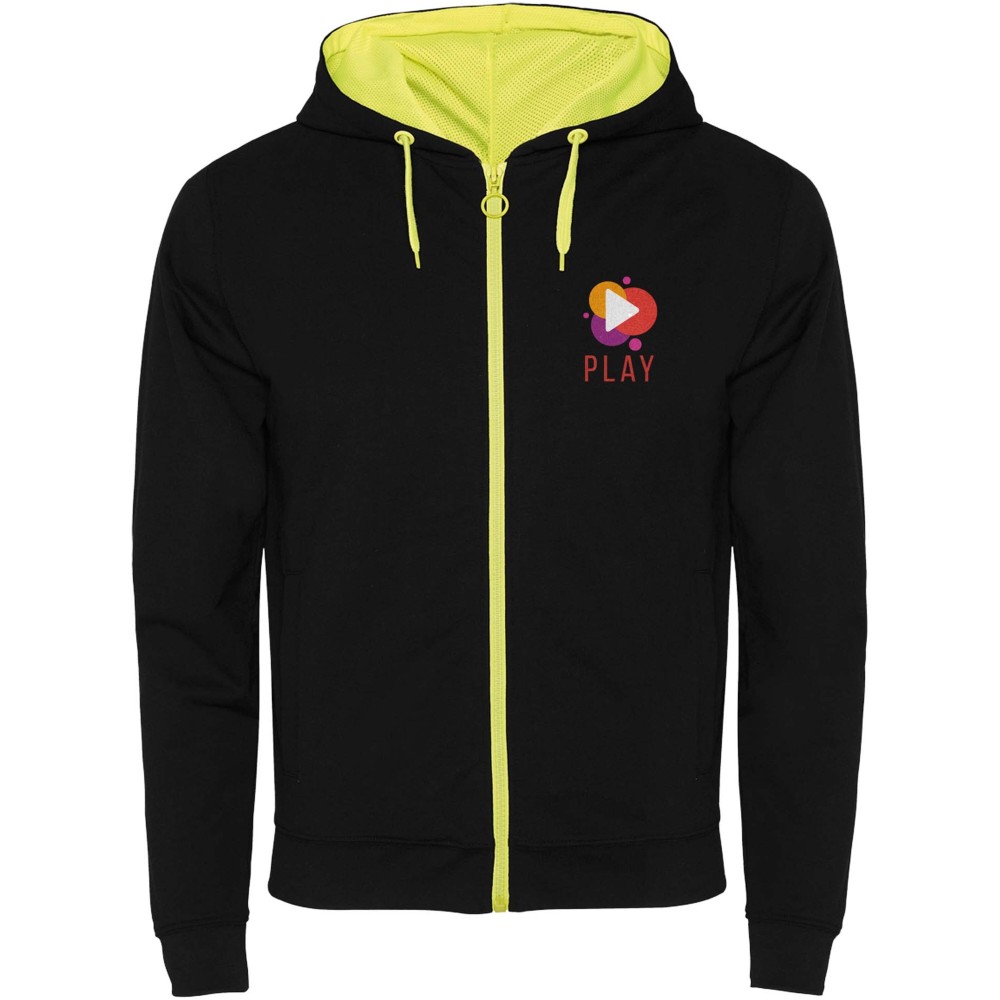 Roly Fuji uniszex cipzáros pulóver, Solid black, Fluor Yellow