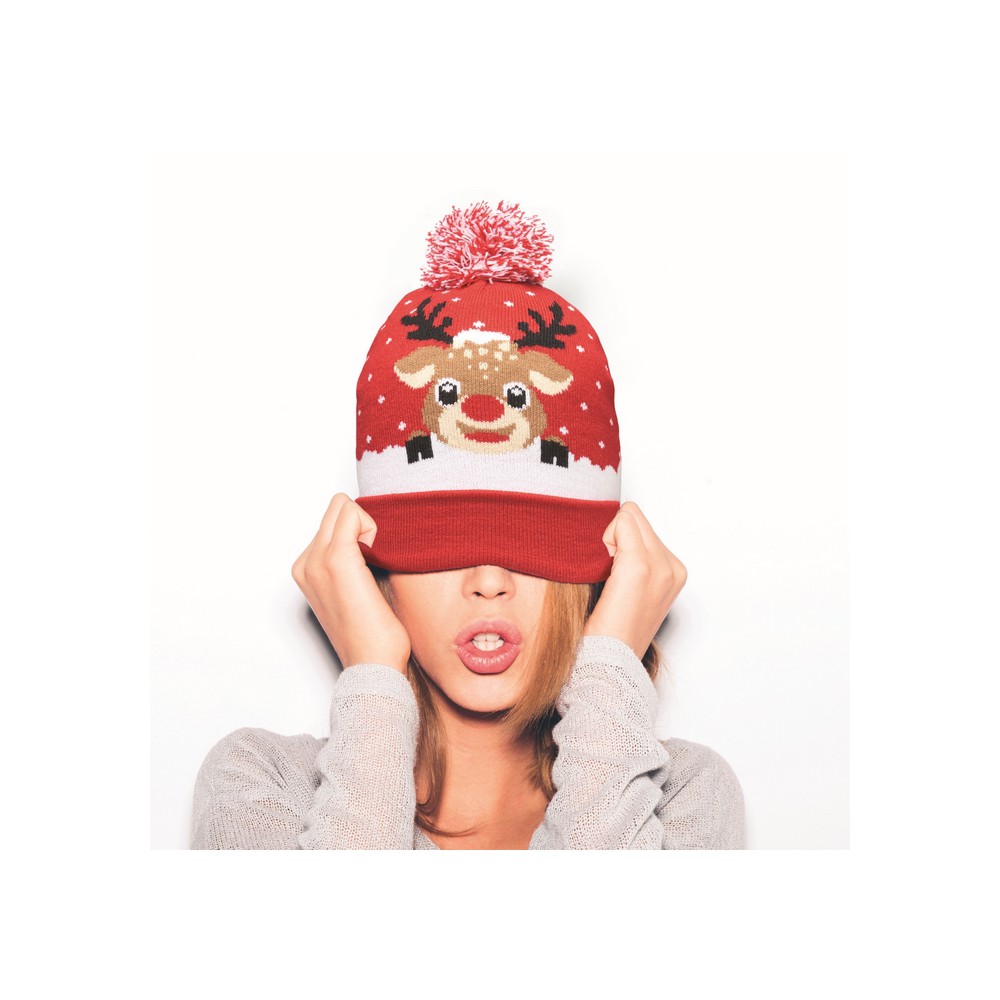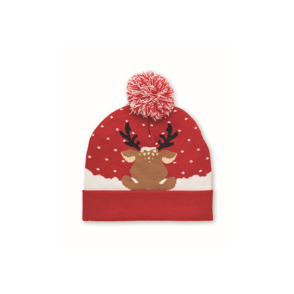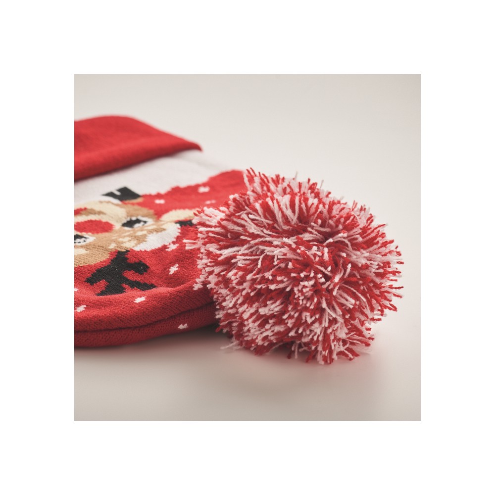 Karácsonyi kötött sapka mandzsettás aljjal, bojttal, puha, rugalmas akril anyagból.