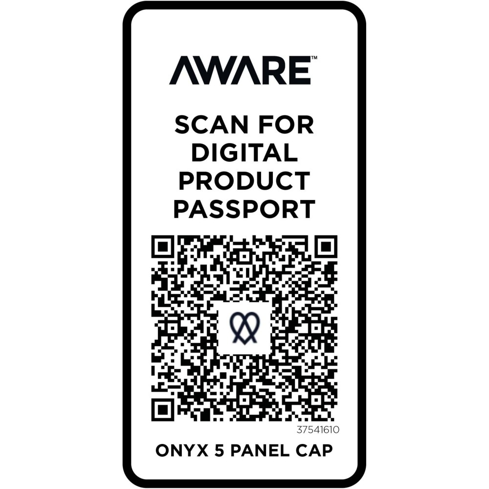 Az Onyx 5 paneles sapka 70%-ban újrahasznosított pamutból és 30%-ban újrahasznosított poliészterből készült. Úgy tervezték, hogy 58 cm-es fejkörfogatnál kényelmesen illeszkedjen, a fémcsatos záródás pedig könnyű és biztonságos beállítást tesz lehetővé. A sapka Cyclo újrahasznosított szálakat tartalmaz, ahol előválogatott hulladékot használnak, amely meghatározza a fonal színét. Ezek a szálak nem csak a szűz erőforrások iránti igényt csökkentik, hanem a körkörös élet iránti elkötelezettséget is mutatják, megtestesítve a hulladékcsökkentés lényegét. Minden sapkához egy Aware nyomjelző is tartozik. Ez az innovatív funkció lehetővé teszi a felhasználók számára, hogy egy QR-kód segítségével nyomon követhessék a termék eredetét és útját, növelve az ellátási lánc átláthatóságát, és elősegítve a termék és a gyártási folyamat közötti szorosabb kapcsolatot.