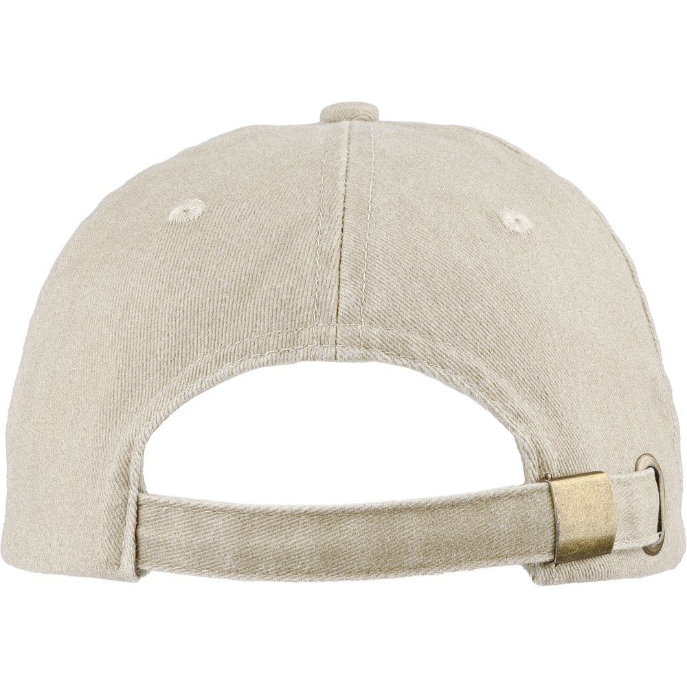 5 paneles baseballsapka 240 g/m2 vászon anyagból, koptatott hatású kivitelben, 7 cm-es ellenzővel, fémcsattal állítható pánttal. Bélés nélkül.