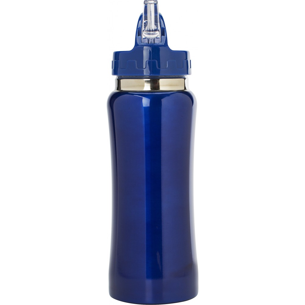 Acél kulacs fém és műanyag külső felülettel. Nem szivárgásmentes. Mosogatógépben nem tisztítható. 600 ml. Rozsdamentes acél és BPA-mentes műanyag.