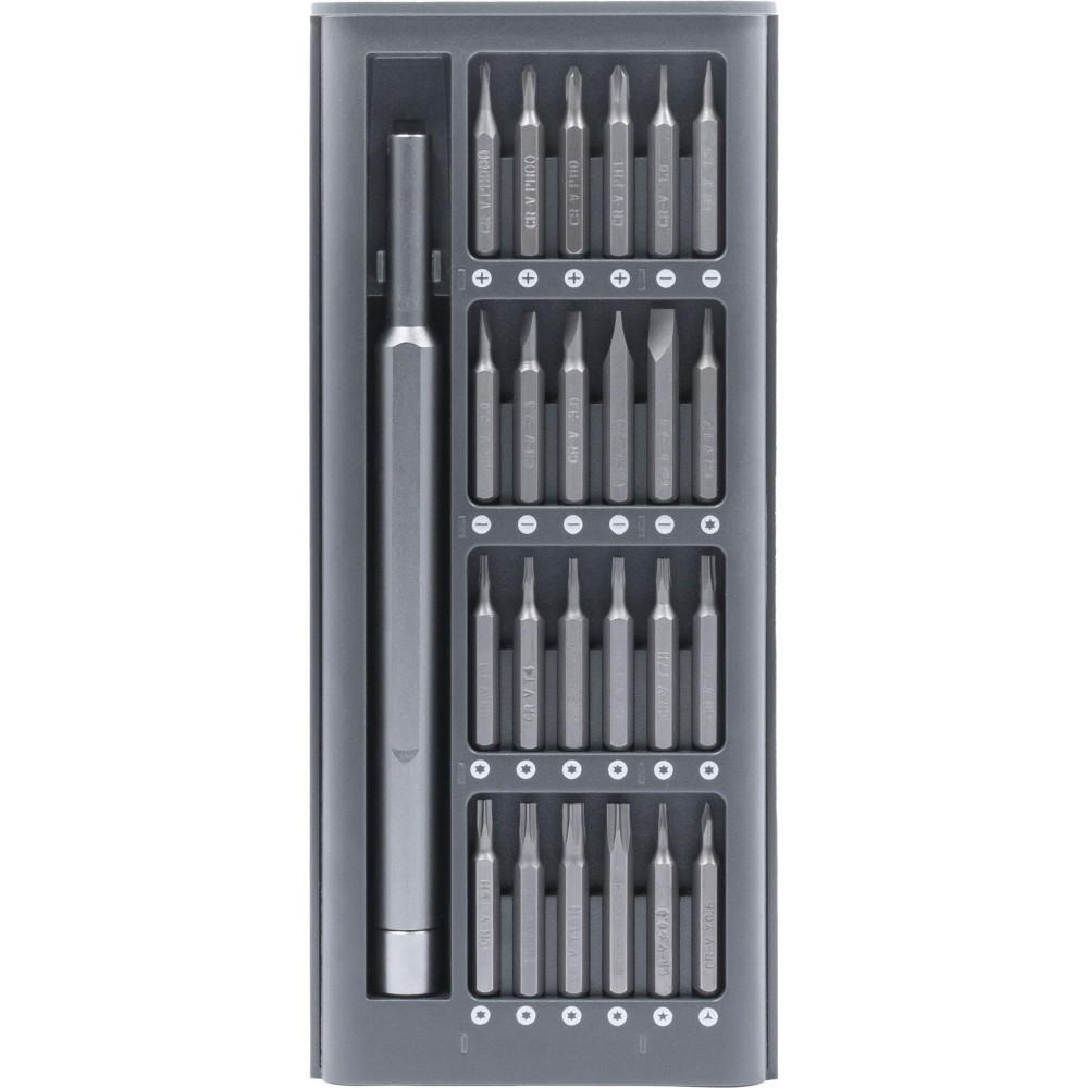 Az Everybit Lite multifunkciós szerszám tökéletesen alkalmas a legkülönbözőbb eszközök javítására, beleértve az okostelefonokat, MacBookokat, iPadeket, elektronikai eszközöket, órákat, fényképezőgépeket, laptopokat, szemüvegeket, áramköri lapokat, játékokat, PC-ket és játékkonzolokat. Tartós CRV acélból készült 24 mágneses precíziós bitet és a kényelmes fogást biztosító alumíniumötvözetből készült fogantyúja van.