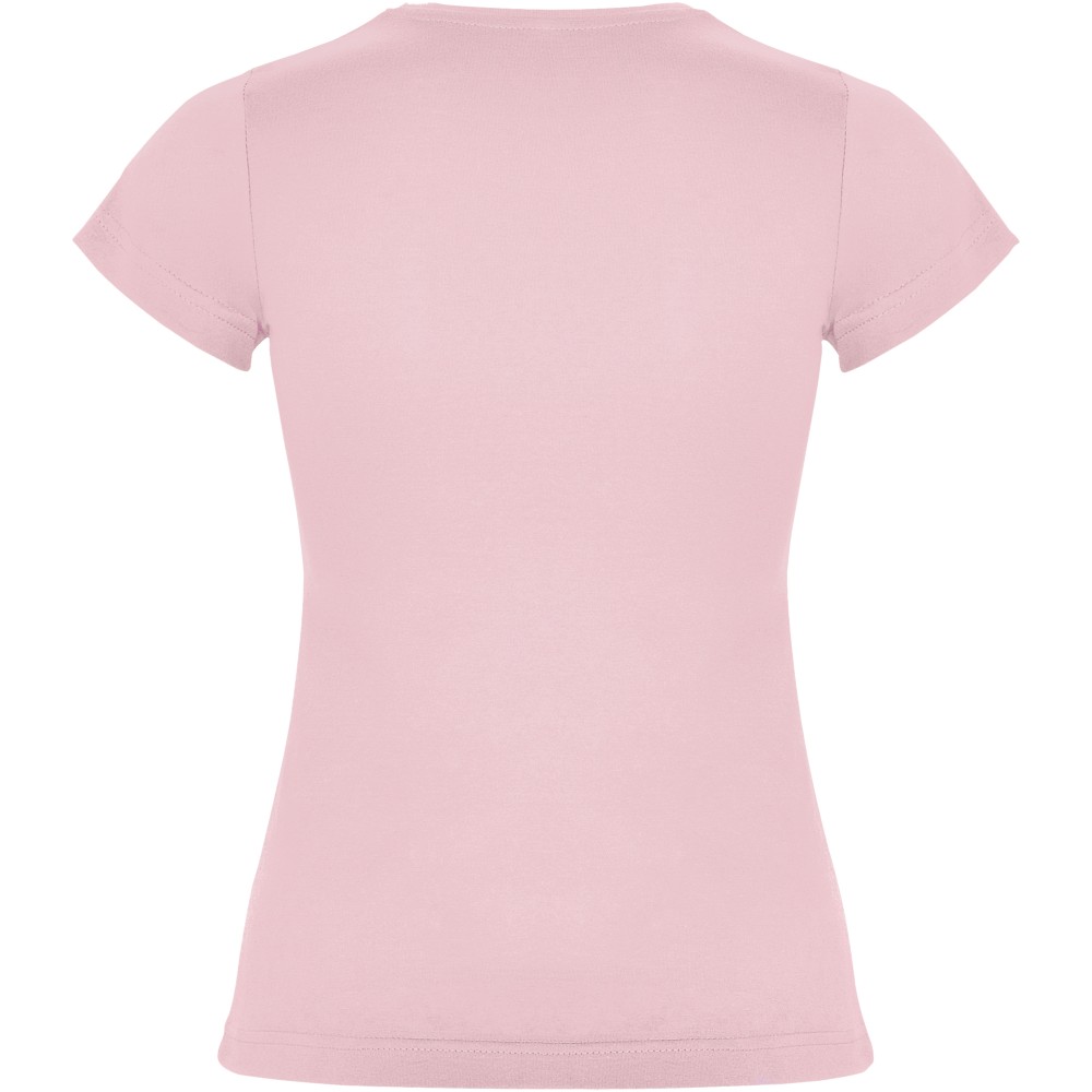 Rövidujjú, karcsúsított, oldalvarrott női póló. 1x1 dupla rétegű bordás nyak és válltól vállig tartó fedett varratok. 100% pamutból készült, 155 g/m2 súlyú, egyrétegű Jersey kötés.