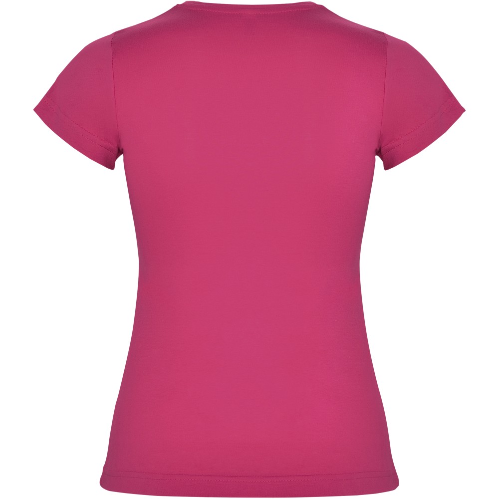 Rövidujjú, karcsúsított, oldalvarrott női póló. 1x1 dupla rétegű bordás nyak és válltól vállig tartó fedett varratok. 100% pamutból készült, 155 g/m2 súlyú, egyrétegű Jersey kötés.