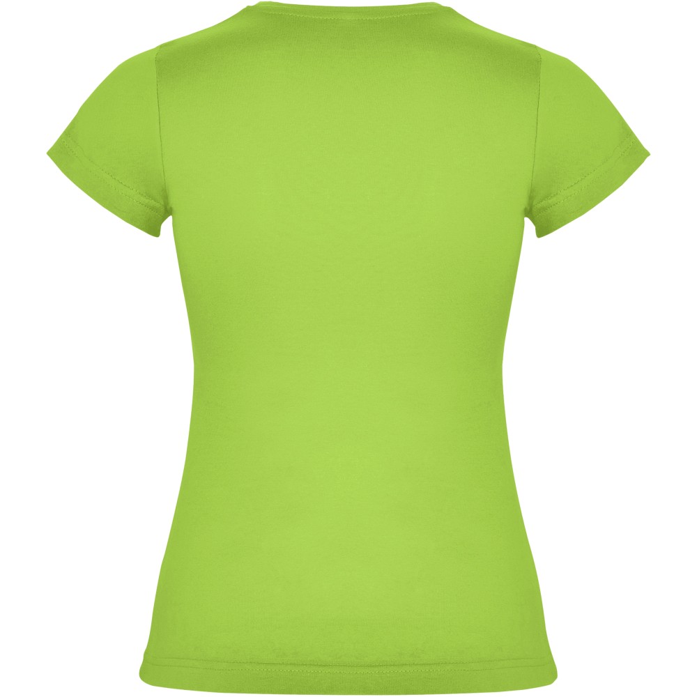 Rövidujjú, karcsúsított, oldalvarrott női póló. 1x1 dupla rétegű bordás nyak és válltól vállig tartó fedett varratok. 100% pamutból készült, 155 g/m2 súlyú, egyrétegű Jersey kötés.