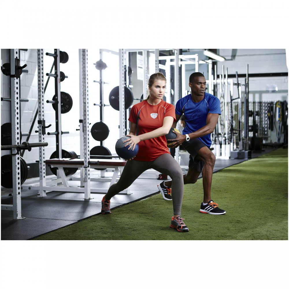 Normál szabásvonal. Fényvisszaverő csík a raglánujjaknál. Fényvisszaverő logónyomat hátul. Szatén szalagerősítés a nyakrészen. Saját anyagából készült nyakpasszé. 100% poliészter háló. Cool Fit. 145 g/m2.
