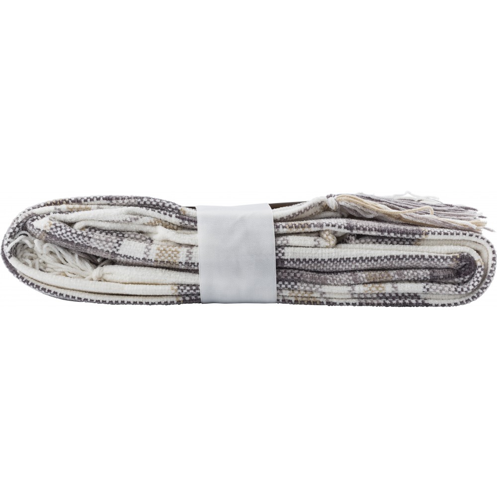 Zsenília takaró a rövidebb oldalain rojtokkal. Tépőzáras szalaggal összefogva. 100% poliészter (285 gr / m2).