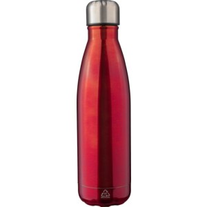 Újrahasznosított rozsdamentes acél, duplafalú kulacs csavaros kupakkal. A belső rész 304-es rozsdamentes acélból, a külső rész 201-es rozsdamentes acélból készült. Az újrahasznosított logó gravírozva van a kulacson. Egyenként barna kartondobozba csomagolva. Űrtartalom: 500 ml.
