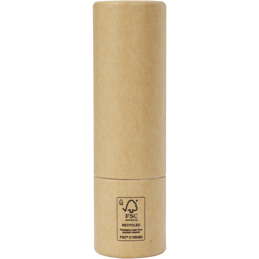 Ajakápoló. Védelmet nyújt a nap ultraibolya (UV) sugarai ellen. Úgy tervezték, hogy hidratálja és védje az ajkakat. A külső burkolat újrahasznosított papírból készült. Jó választás magánszemélyek és vállalkozások számára, akik a fenntarthatóbb termékeket részesítik előnyben. Az illata vanília. Szavatosság: vásárlástól számított 3 év. FSC újrahasznosított 100% P10 CU-COC-877277.