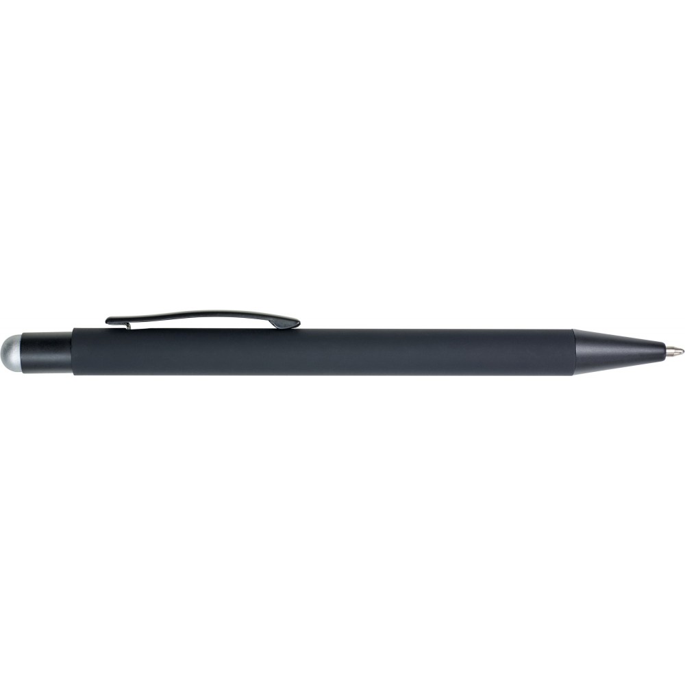 Golyóstoll színes érintővel, kék tollbetéttel és színes belső felülettel. ABS műanyag és alumínium.