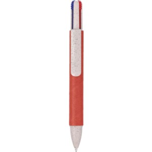 Újrahasznosított kartonból és szalmából készült négyszínű golyóstoll. Kb. 300 méter íráshossz színenként. Tollbetét színek: kék, fekete, piros és zöld.