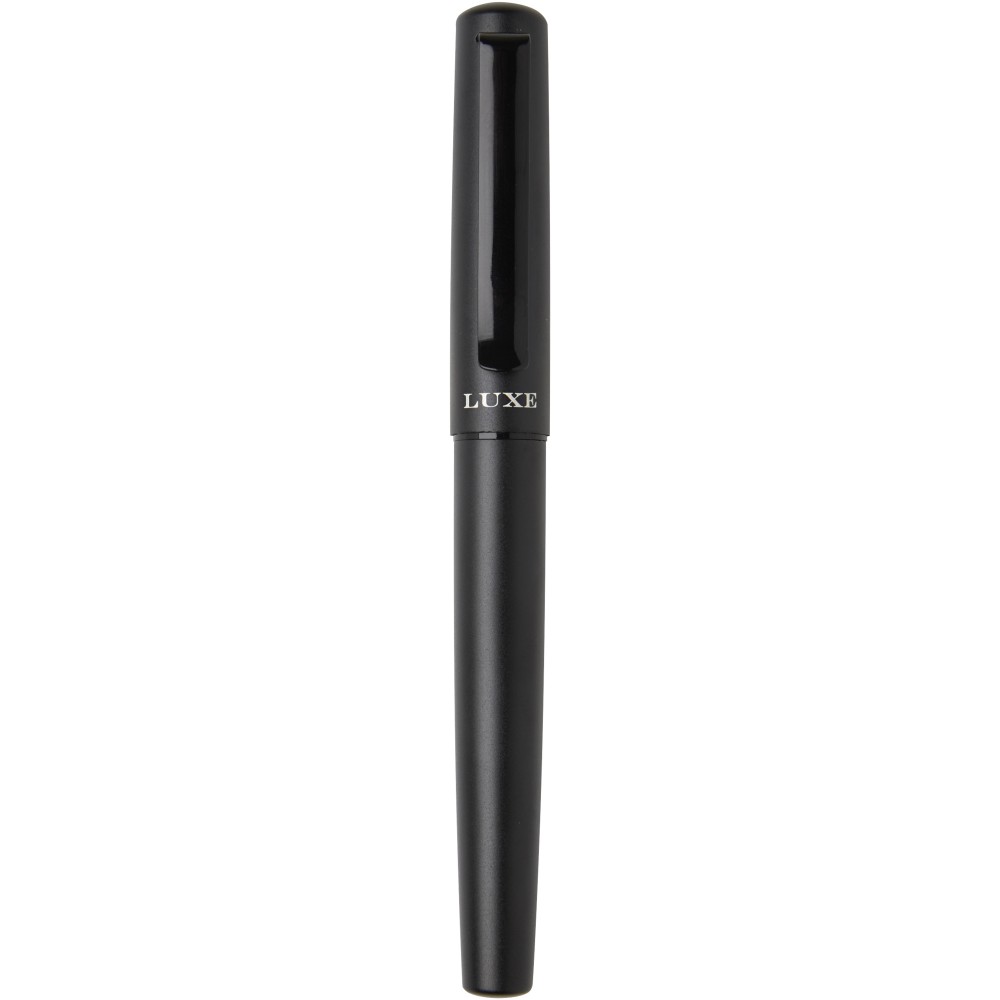 Töltőtoll újrahasznosított alumínium testtel, matt fekete bevonattal és fekete, újrahasznosított alumínium markolattal. Az alumínium újrahasznosítható anyag, és ha ezt a tollat választja, támogathatja a fenntarthatóbb gyakorlatokat, és új életet adhat az eldobott alumíniumnak. Ez a stílusos töltőtoll praktikus és fenntarthatóbb lehetőség a környezetbarát íróeszközöket kereső cégek és szervezetek számára. Fekete patronnal és fekete díszdobozban szállítjuk. Doboz mérete: 16,8 x 4,2 x 2,5 cm.