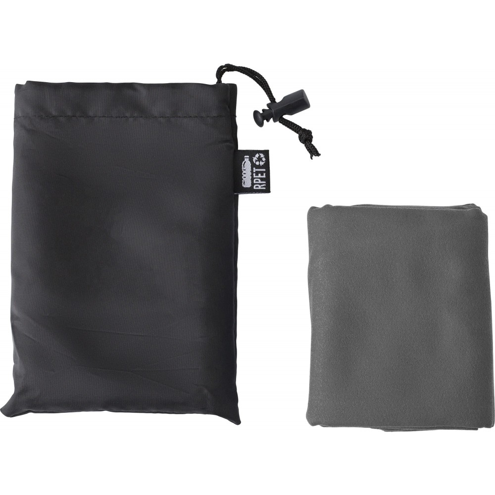 RPET törölköző tokkal. A törölköző mérete: 79 x 30 cm.