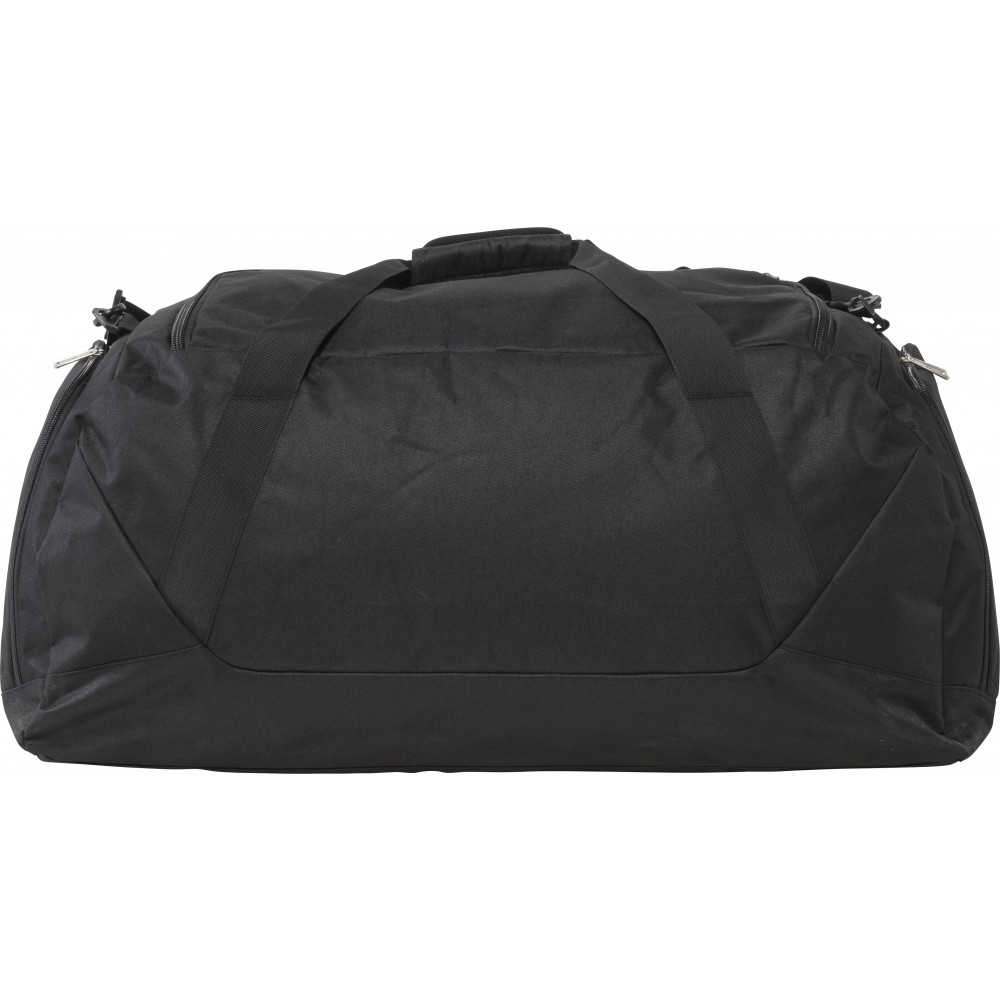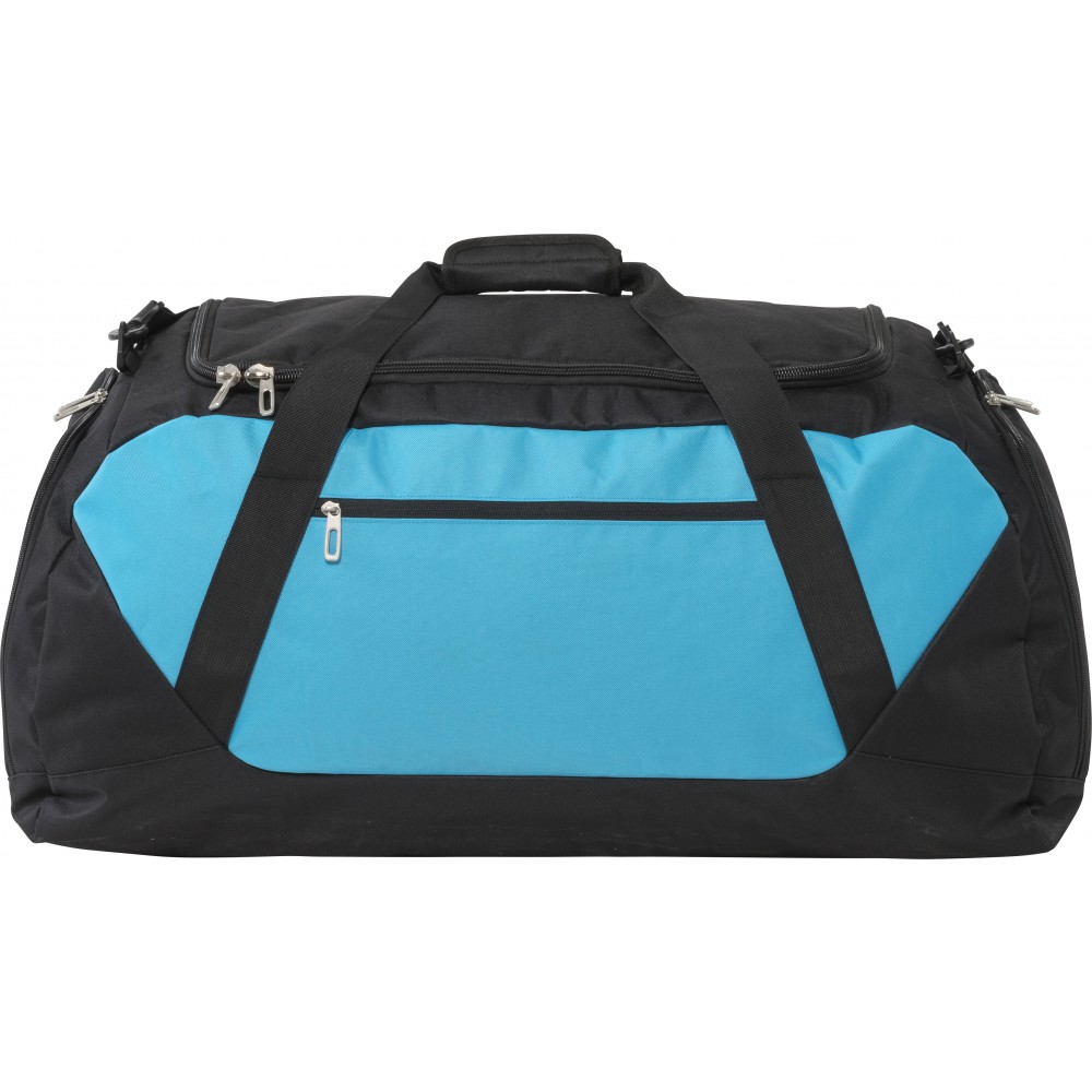 Nagy utazótáska nagy felső résszel, cipzáros első zsebbel, állítható vállpánttal. 600D poliészter.