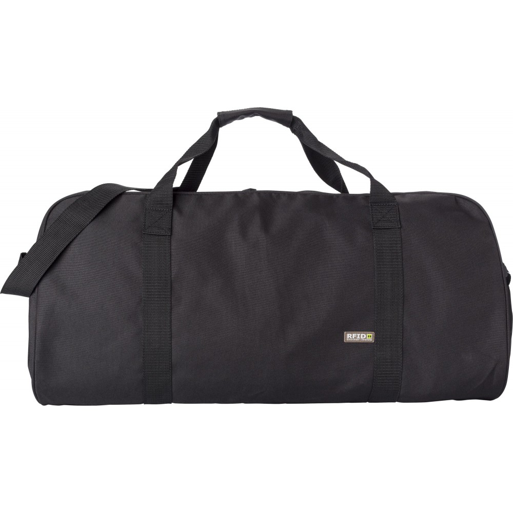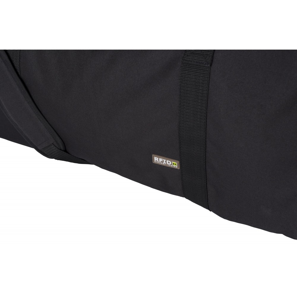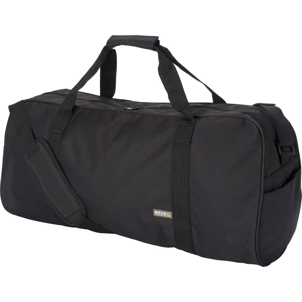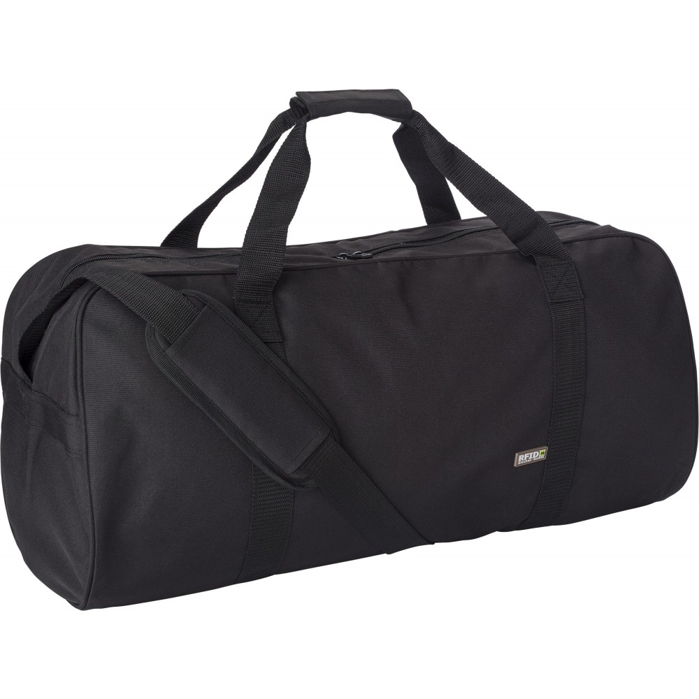 Sporttáska RFID védelemmel, állítható vállpánttal. A főrész és a belső zseb cipzárral zárható. 600D poliészter.