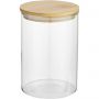Közepes méretű, üvegből készült ételtartó bambusz fedéllel. Egyesíti a biztonságos és tartós anyagnak számító üveg előnyeit a bambusz megújuló tulajdonságaival. Az üvegtartó (fedél nélkül) mikrohullámú sütőben és mosogatógépben mosható. Újrahasznosított kraftpapír dobozba csomagolva. Űrtartalom: 550 ml.