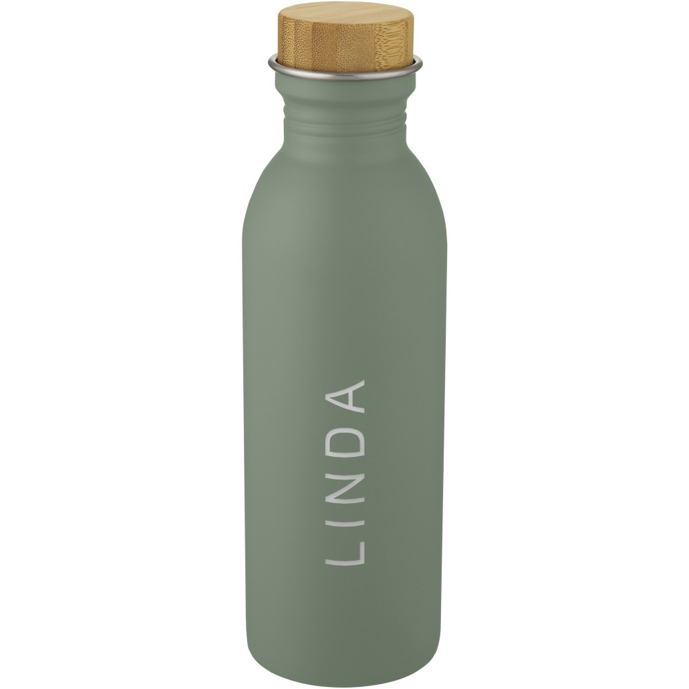Egyfalú, 18/8-as rozsdamentes acél sportpalack bambusz tetővel. BPA-mentes, a német élelmiszerbiztonsági törvény (LFGB) szerint tesztelt és jóváhagyott. Ftaláttartalomra tesztelve és jóváhagyva a REACH előírásai szerint. A felhasznált bambusz fenntartható, környezeti és társadalmilag felelős forrásból származik. Szivárgásmentes. Szénsavas italokkal nem használható. Mosogatógépben nem mosható és mikrohullámú sütőben történő melegítésre nem alkalmas. Űrtartalom: 650 ml. Újrahasznosított karton díszdobozban.