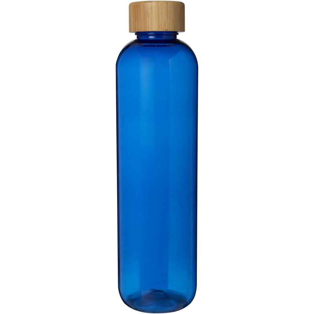 Újrahasznosított műanyagból készült vizes palack, stílusos bambuszfedéllel. A palack BPA-mentes, a német élelmiszer-biztonsági jogszabályok (LFGB) valamint REACH-szabályozás szerinti ftalát-tartalomra tesztelt és jóváhagyott. A bambusz fenntartható, környezetileg és társadalmilag felelős forrásból származik. Mosogatógépben nem mosható. Újrahasznosított kartonból készült díszdobozban szállítjuk. Nagy űrtartalmú palack: 950 ml.