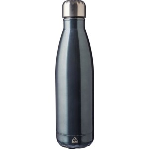 Újrahasznosított rozsdamentes acél, egyrétegű kulacs csavaros kupakkal. 304-es rozsdamentes acélból készült. Az újrahasznosított logó gravírozva van a kulacson. Egyenként barna kartondobozba csomagolva. Űrtartalom: 650 ml.