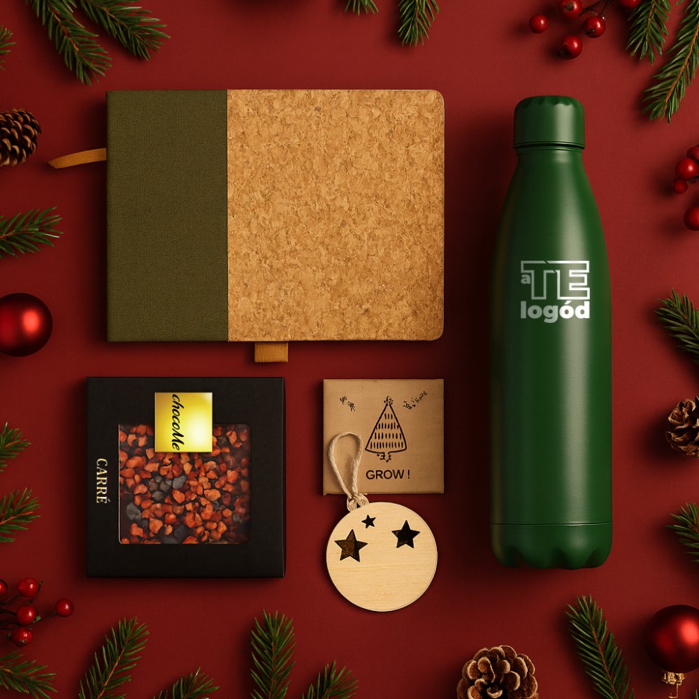 Az ünnep varázsát idézi meg ez az összeállítás, amely természetközeli hangulatot és melegséget sugároz. A csomag tartalma: duplafalú palack, 500 ml (1015134-04), parafa-pamut jegyzetfüzet, A5 méret (967381-04), Chocome táblacsoki, 50 g (GCM0015), karácsonyfadísz lucfenyő magokkal (CX1556-40). Csomagolási lehetőségekről érdeklődj ügyfélmenedzserednél! A kép illusztráció. A kínálatunkban szereplő termékek igény szerint kombinálhatók. A csomagot rendelés esetén állítjuk össze. Várható szállítási határidő: kb. 2 hét. A termékek emblémázását és csomagolását nem tartalmazza a csomag ára. A csomagban szereplő élelmiszer csak csomag részeként rendelhető.