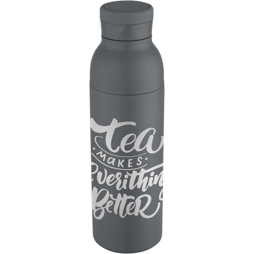 RCS tanúsítvánnyal rendelkező rozsdamentes acélból készült, duplafalú, vákuumszigetelt palack, amelynek fedelén egy diszkrét, beépített szilikon fogantyú található. Az italokat 48 órán át hidegen, vagy akár 12 órán keresztül melegen tartja. A két részből álló konstrukció megkönnyíti a tisztítást, míg a tartós porszórt bevonat és a belső rézszigetelés hosszú élettartamot és kiváló hőtartást biztosít. A terméket újrahasznosított kartonból készült ajándékdobozban szállítjuk. Űrtartalma: 650 ml.